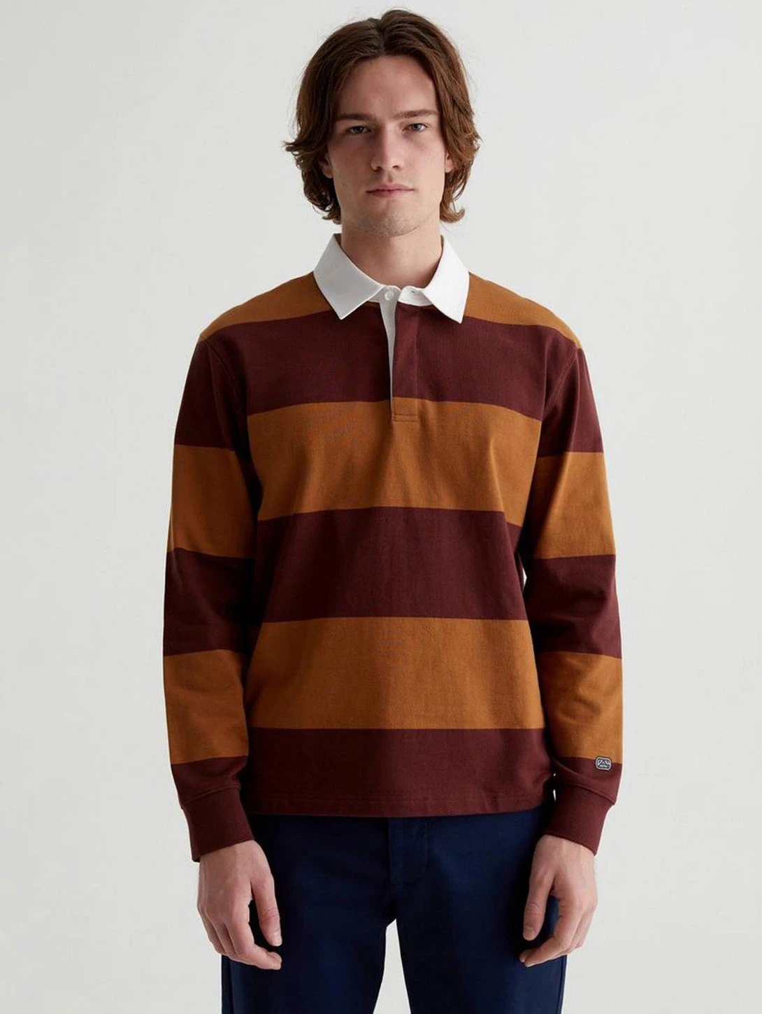 Inspired by vintage collegiate style, the Wade Rugby Shirt comes in heavy cotton jersey with wide stripes. The long-sleeve silhouette has a relaxed fit with a polo collar and a hidden button placket reinforced by cotton twill.