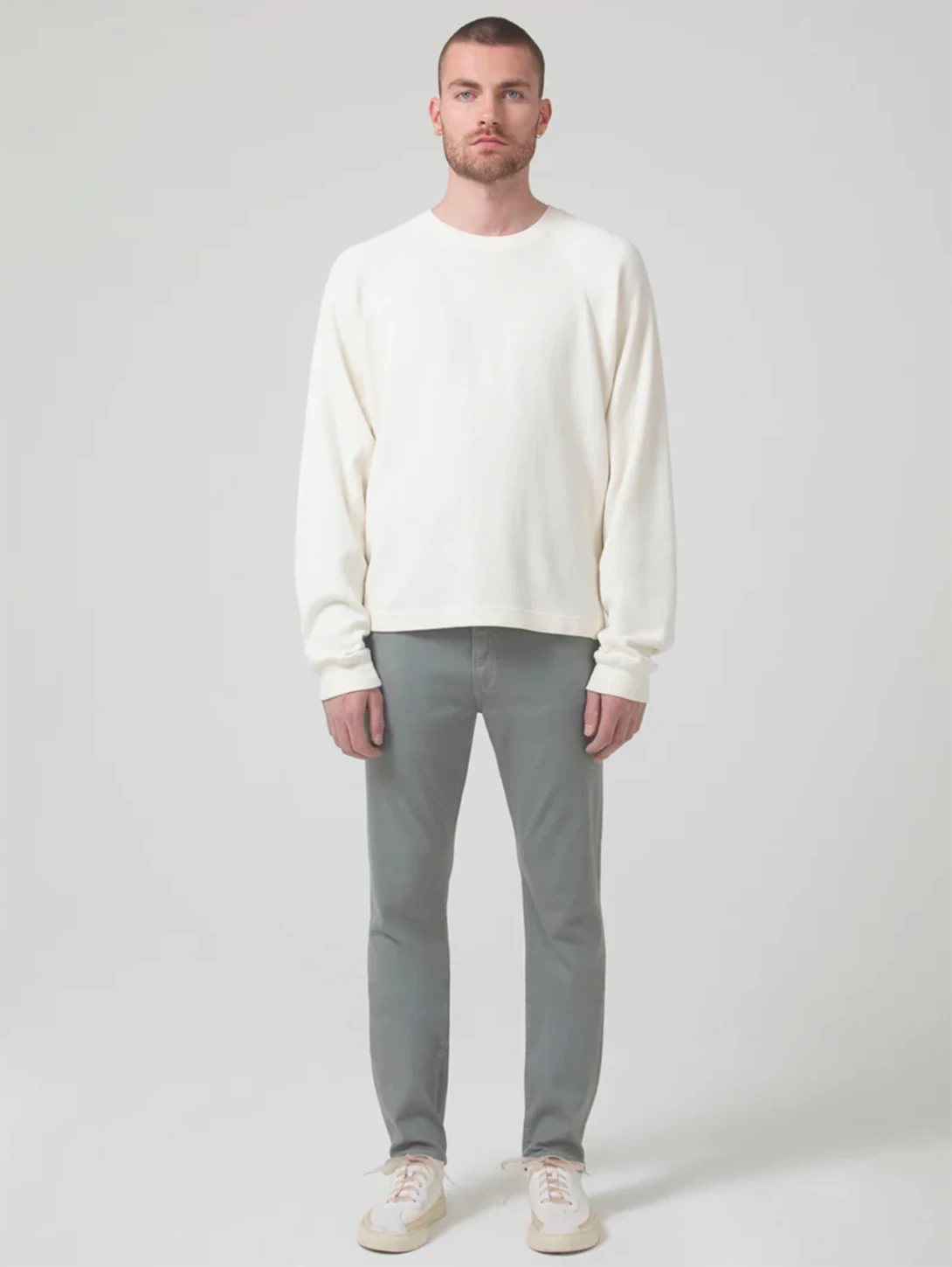 Agave is slightly a higher rise and a slim straight leg, that fits full through the waist and thigh with a small taper from the knee down. Featuring a washed olive green with brown undertones with a 4-way power stretch & recovery twill.