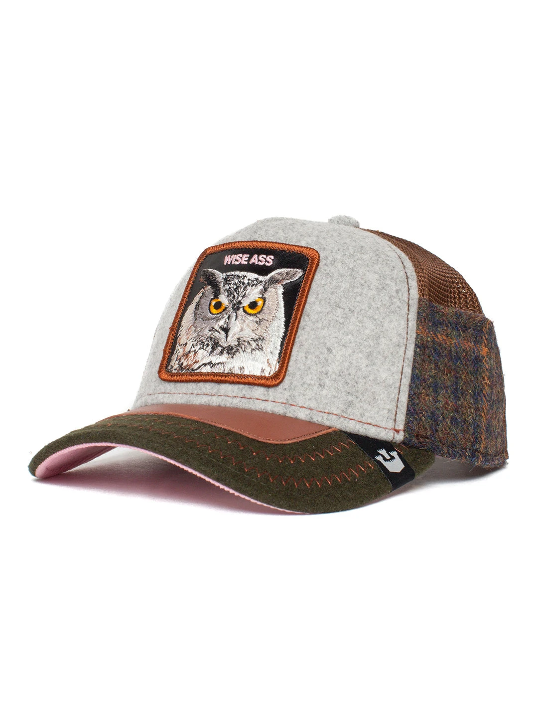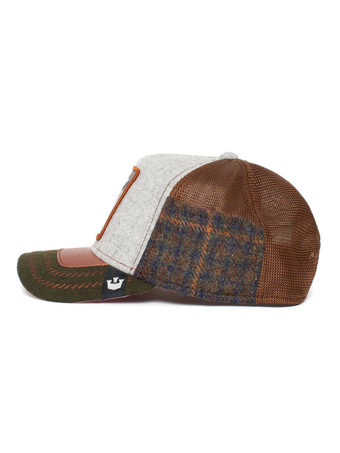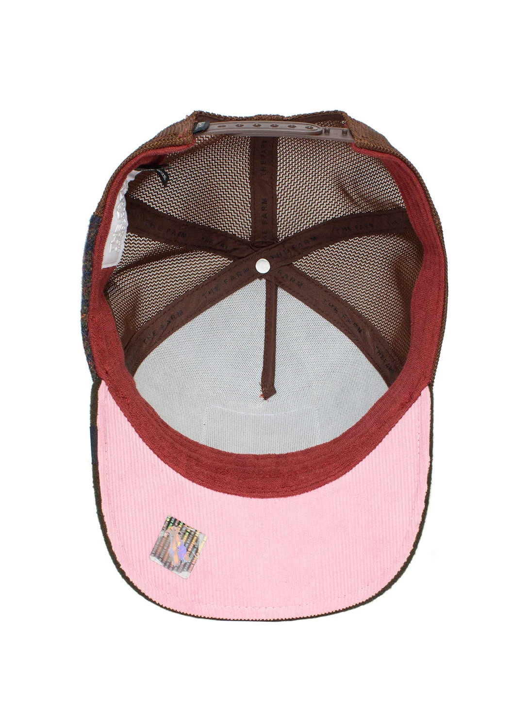 This hat is one size and is made from 100% cotton. It features a flat peak, low profile and a 4-snap-in back strap.
