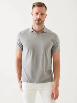 This short-sleeve open polo is crafted from a Peruvian Pima cotton stretch jersey this summer season. Featuring a luxuriously soft hand feel and is pre-shrunk prior to garment construction, minimizing shrinkage and offering long-lasting performance. A perfect staple for the summer!