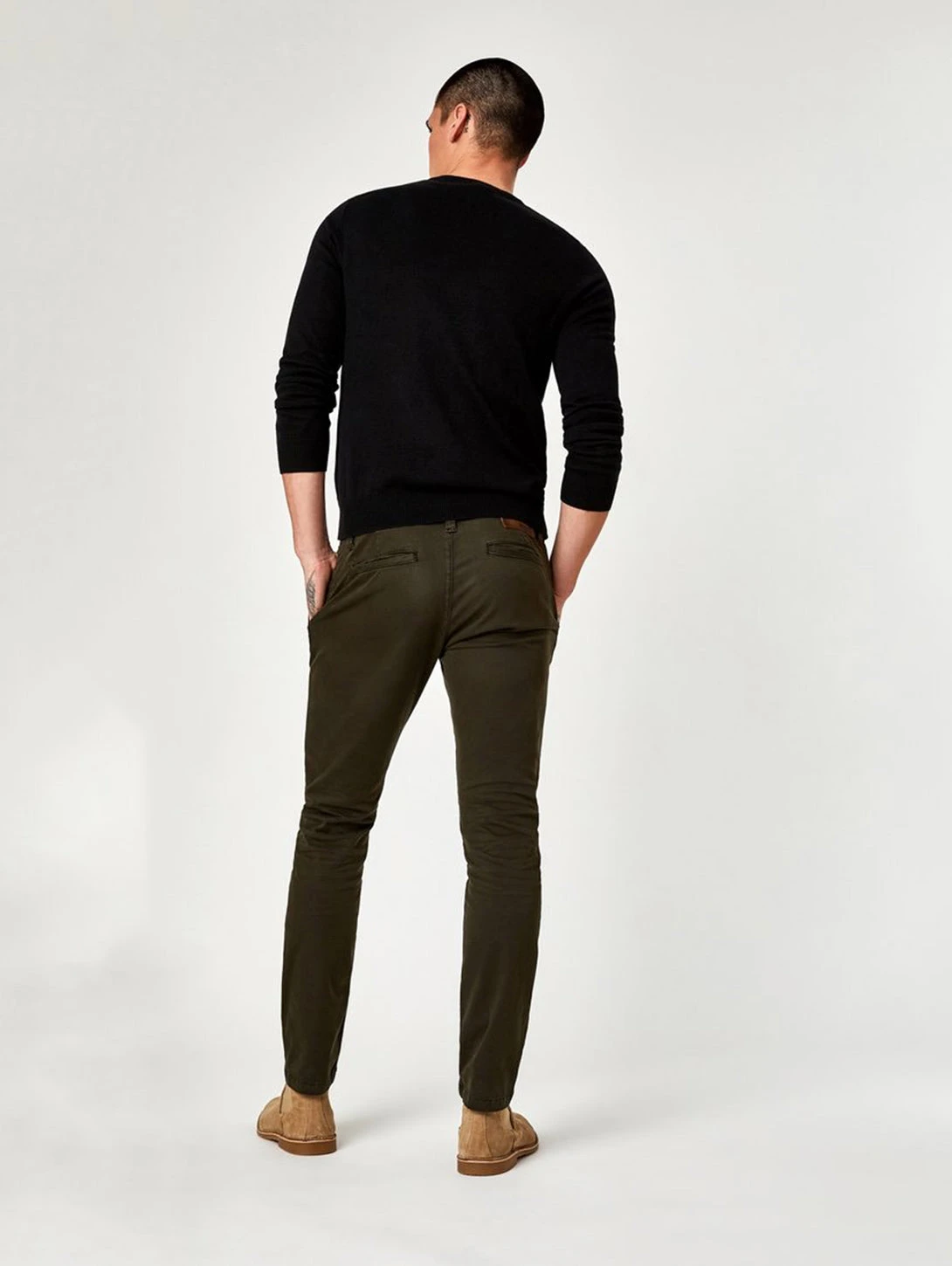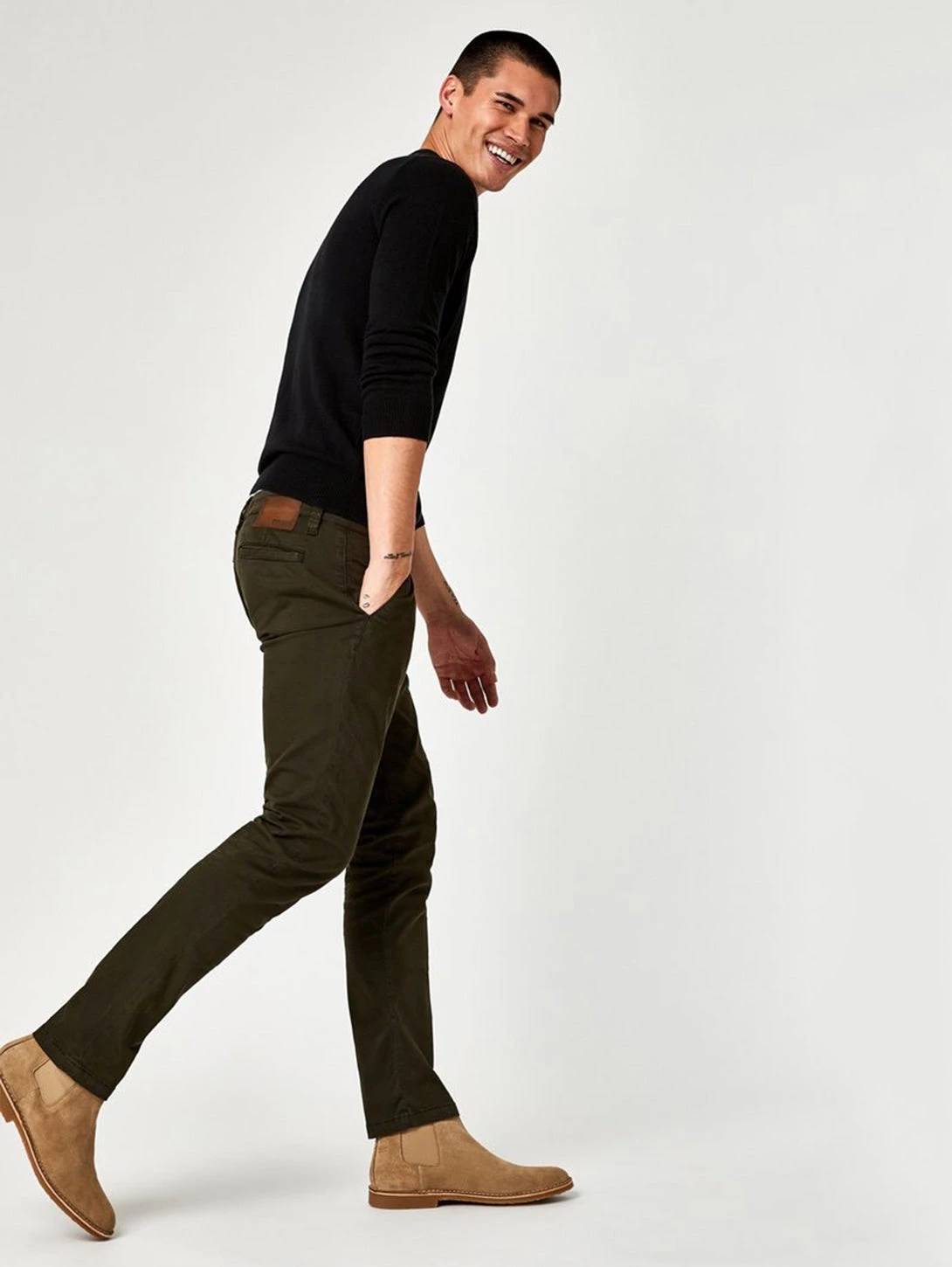 This slim fit chino is made from lightweight twill fabric and has a slim leg and fits slim through the hip, thigh and leg opening. It also features a mid-rise and the classic trouser pocket styling.
