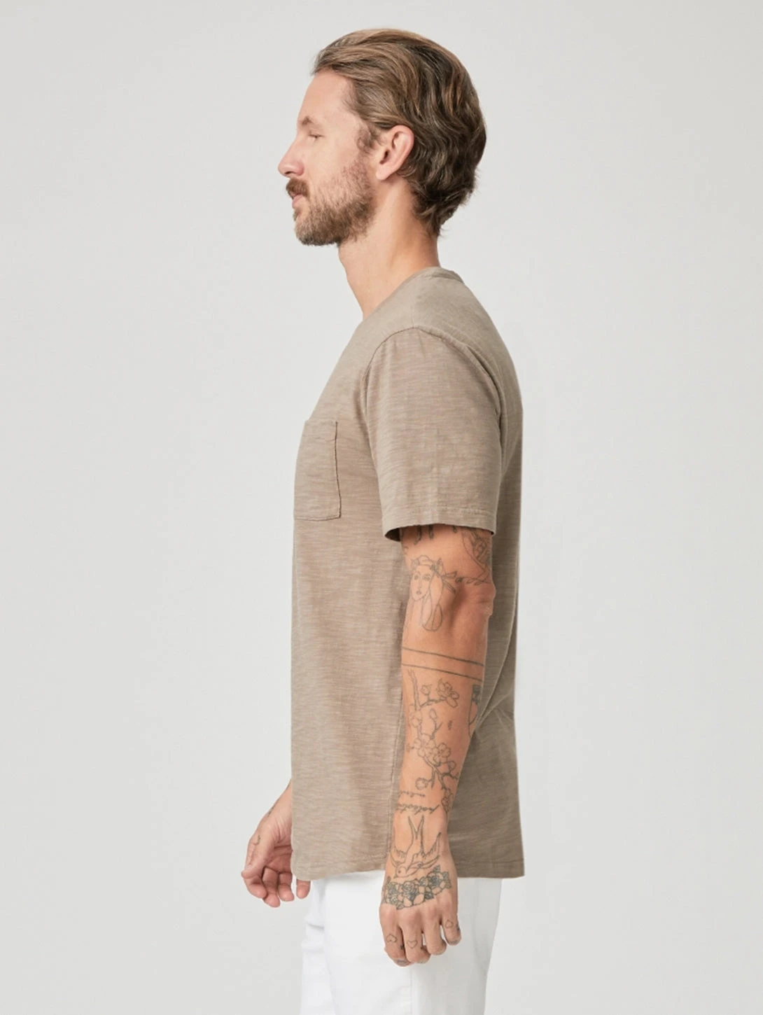 Kenneth is crafted with a supremely soft cotton slub jersey in a neutral brown hue, this crew neck tee features a single chest pocket and a longer torso with a curved hem. Wear it on its own or layered under your favourite jacket for an easy weekend outfit.