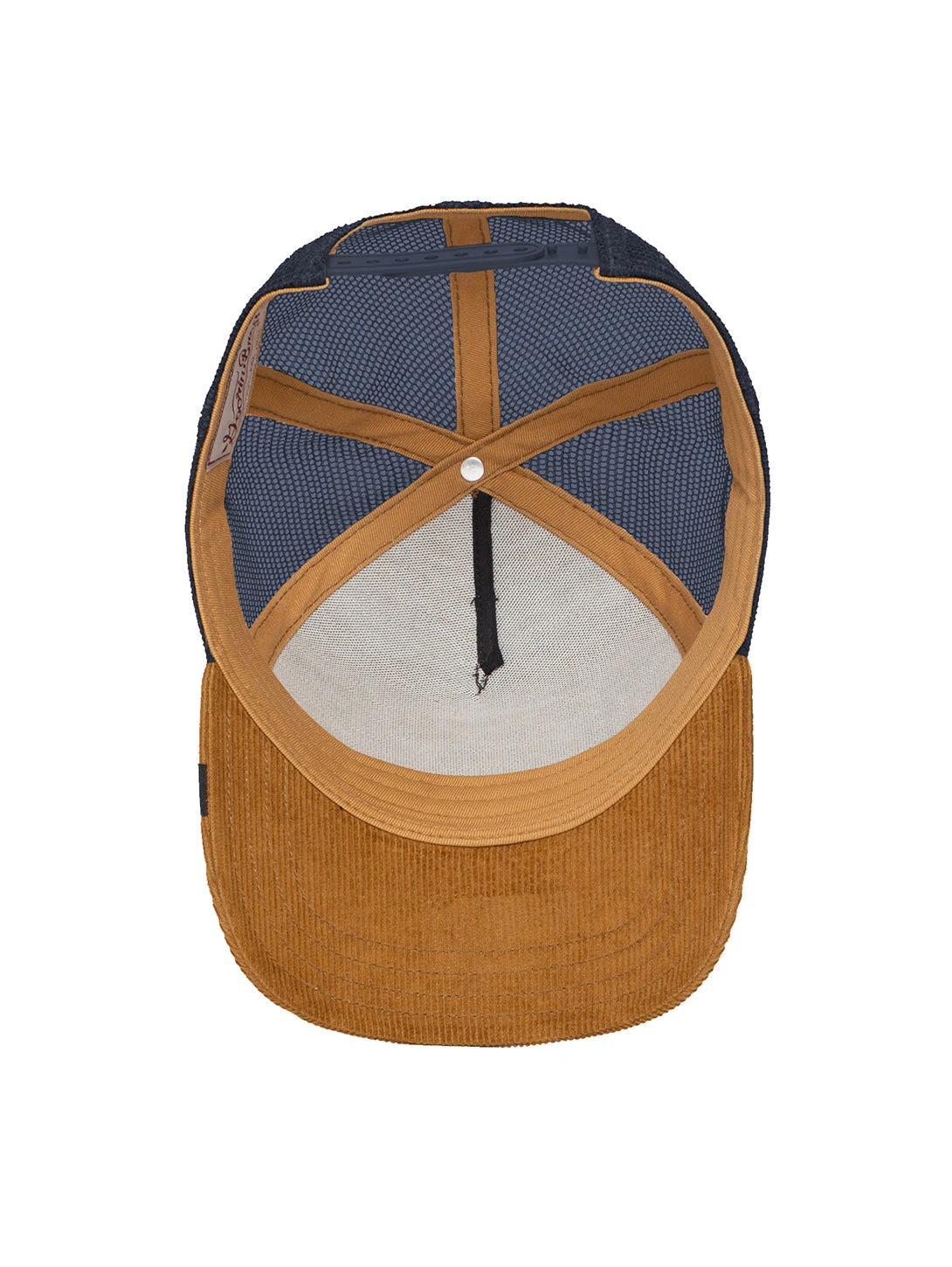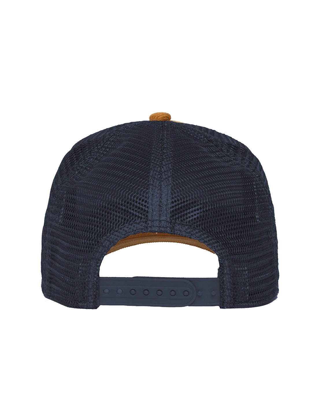 This hat is one size and is made from 100% cotton. It features a flat peak, low profile and a 4-snap-in back strap.