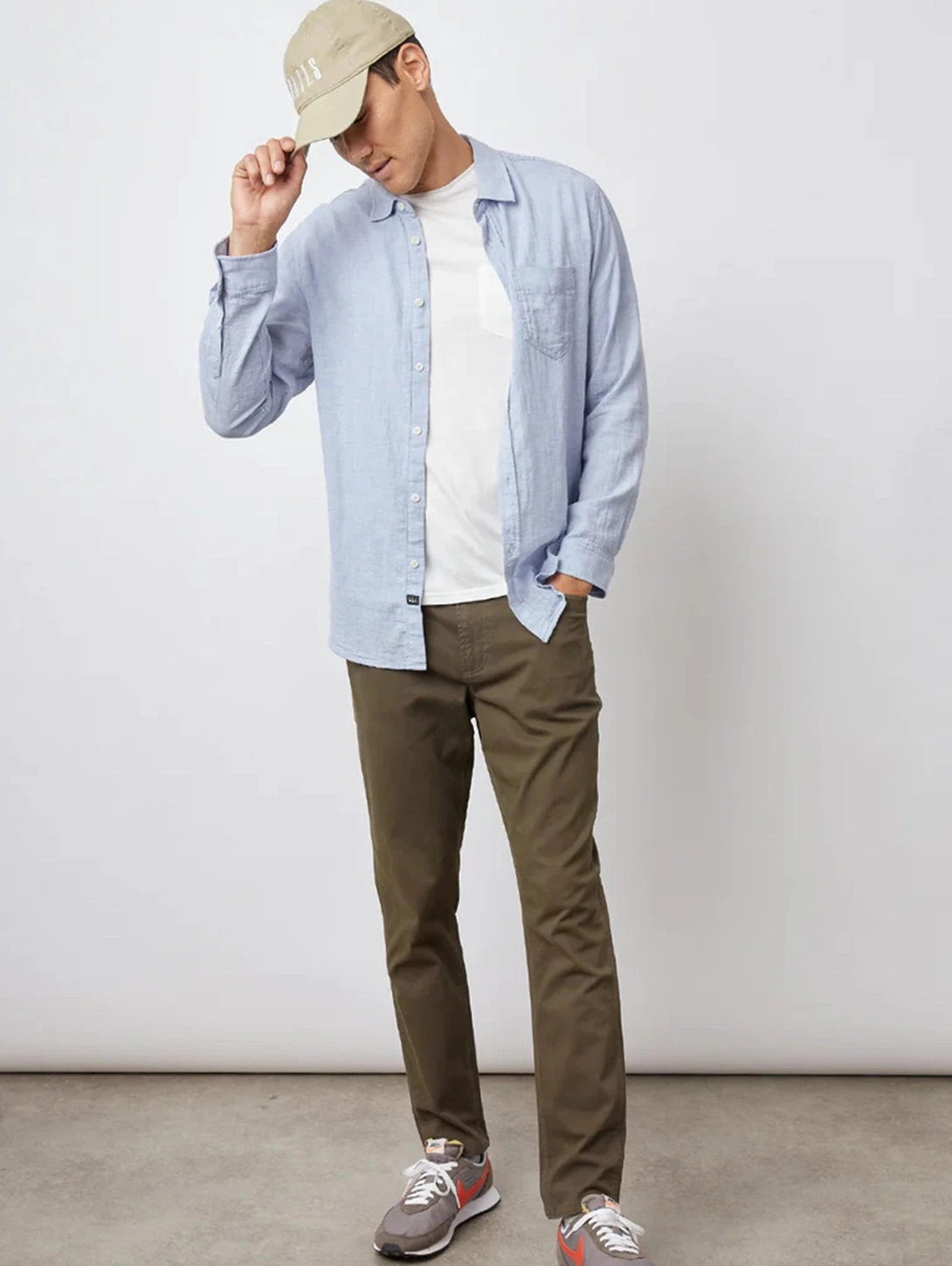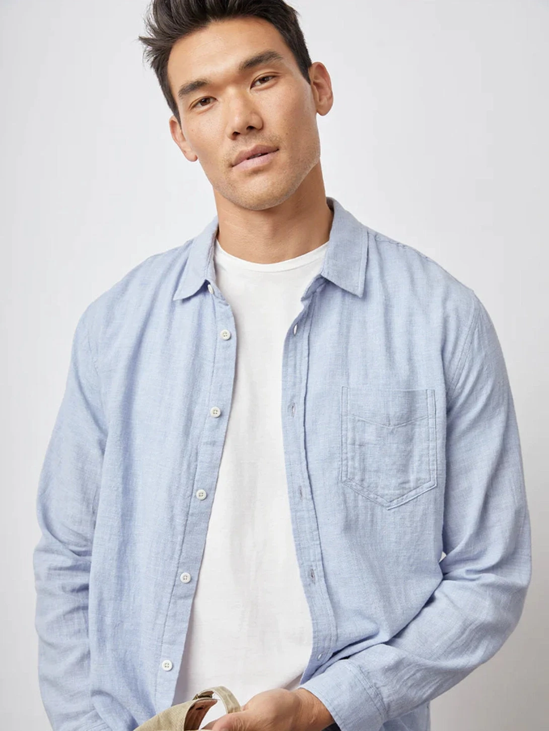 Super soft, breathable cotton fabric mixed with a relaxed body shape makes the Wyatt the perfect Southern California inspired button-down. A classic shirt featuring a single patch pocket at the chest.