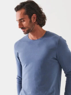 This short sleeve high crewneck t-shirt is made from a Peruvian Pima cotton stretch fabric. Featuring a luxurious silky hand feel and the added feature of stretch for extra comfort. This is a highly versatile item and an ideal layering piece.
