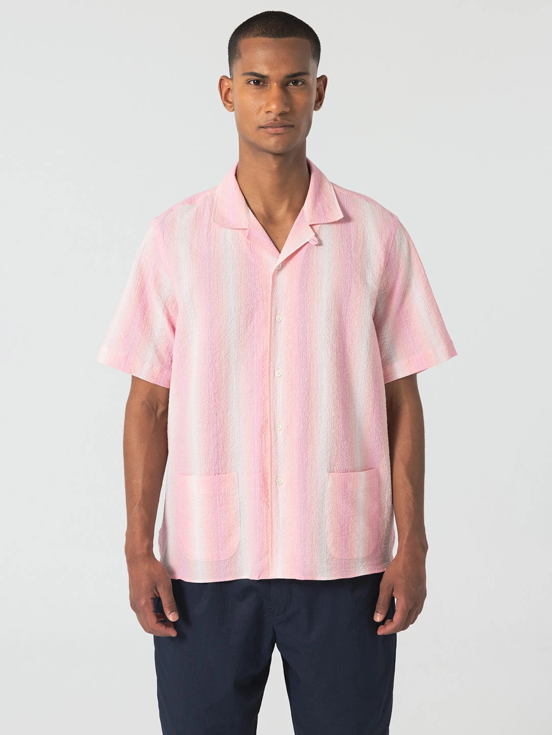 This sleeve shirt is crafted in 100% Cotton. It can be worn by itself or as an over-shirt, you’ll notice it has 2 patch pockets on the outside giving it a point of difference from any other stripe linen shirt this season.Β