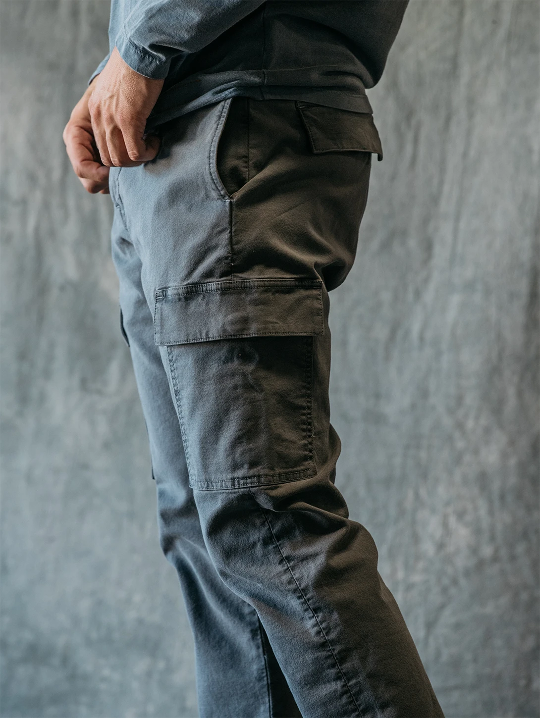 Based on their military cargo pants on the original M-47 fatigues. These 6-pocket pants were worn during the 50s by the French army. These updated classic full-cut trousers with the modern slim straight cut and constructed fatigues with a 5% stretch oxford cloth, for more comfort and mobility. These fatigues have been garment dyed for a vintage look and feel.