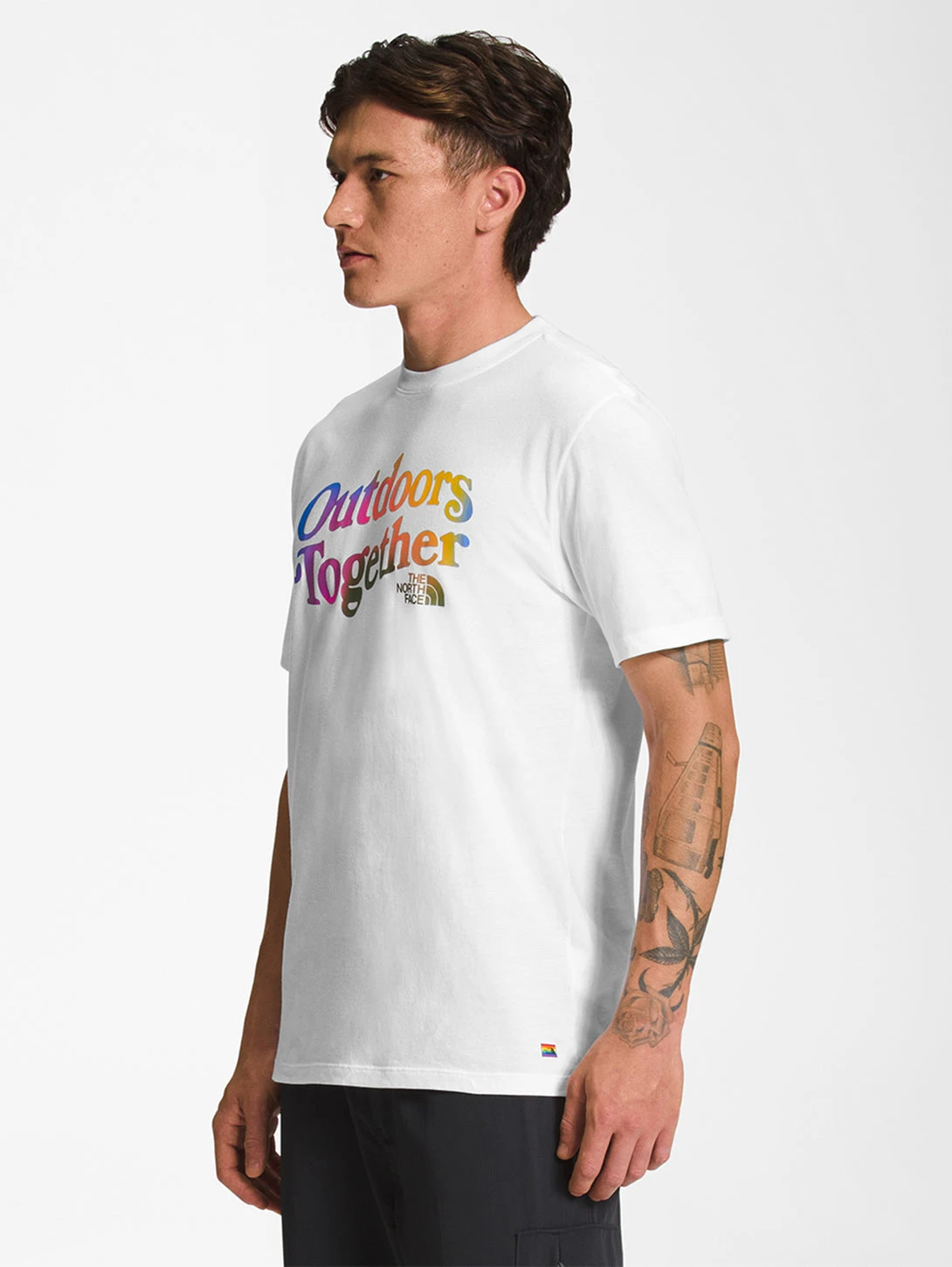 Designed for outdoor adventures, The North Face Pride T-shirt is crafted from a soft fabric blend for optimal comfort. It features a classic crew neckline and set-in sleeves for a maximum range of motion, so you can explore nature in style. Water-based printed graphics add a unique touch.