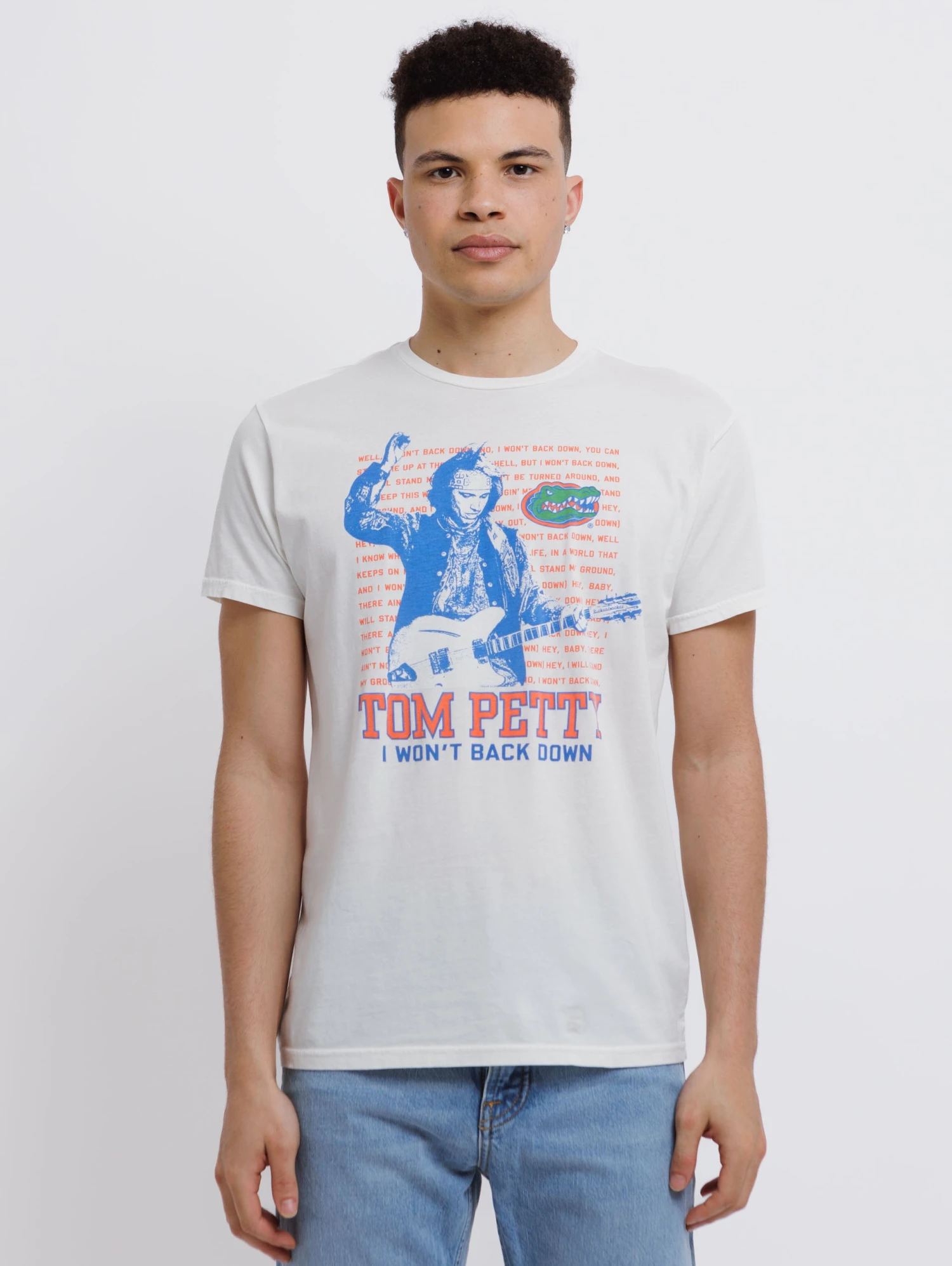 This Tom Petty tee features the lyrics from his influential hit “I Won’t Back Down” released in 1989. Crafted from 100% cotton for a comfortable fit, this crew neck, short-sleeve tee is an ideal choice for fans of the song and its powerful message of resilience and empowerment.