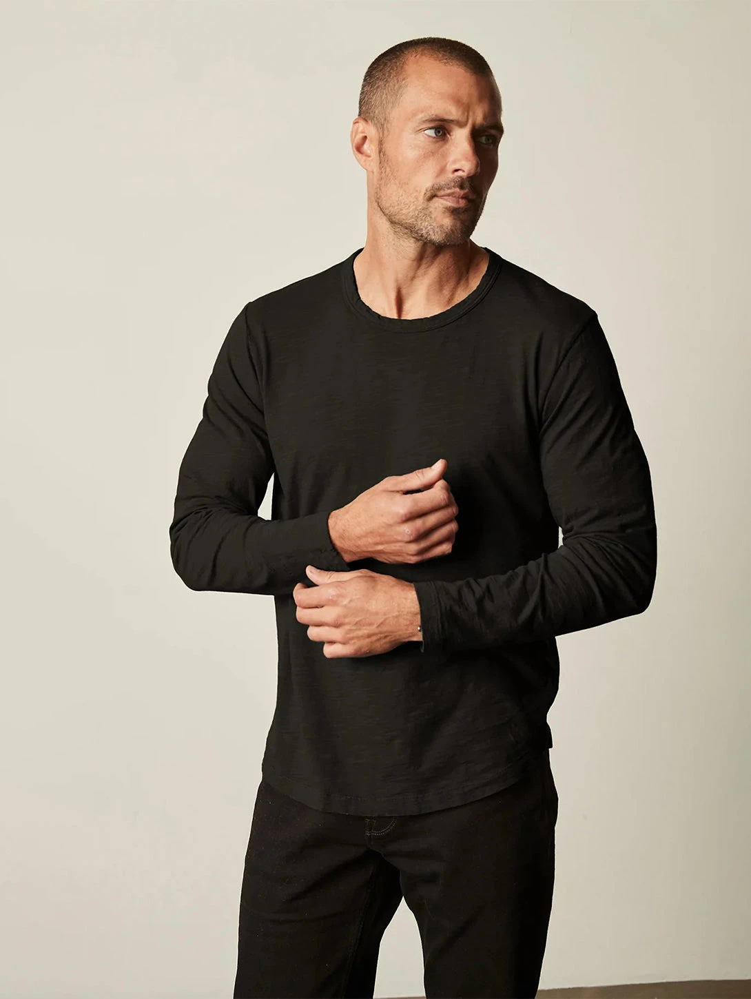 This t-shirt is made from 100% cotton slub. It features a crew neckline, curved hem, and short sleeves.