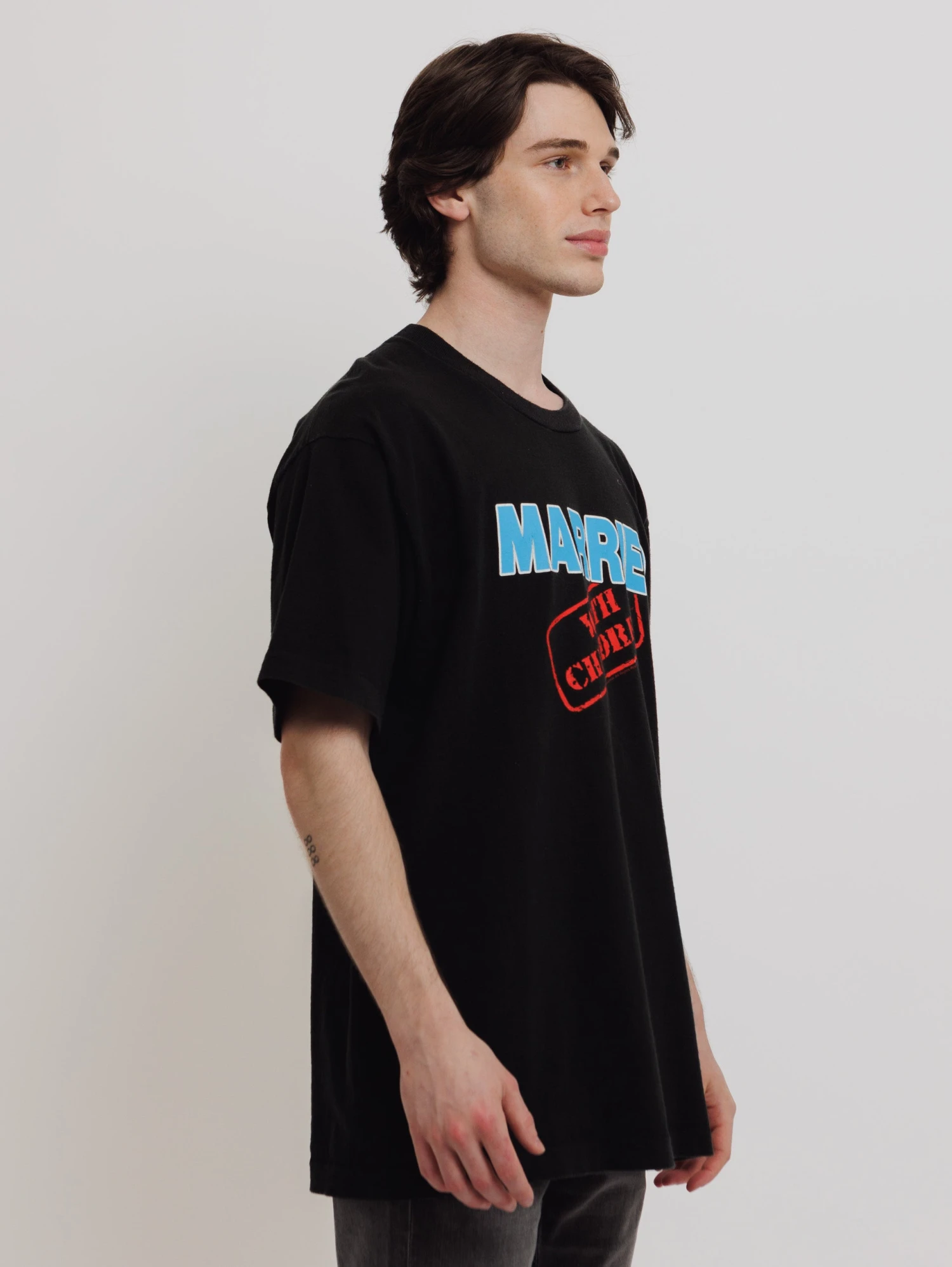This is an original vintage t-shirt from the television sitcom, Married With Children that aired on Fox from April 5, 1987 to June 9, 1997. Starring Ed O’Neill as Al Bundy and Katey Sagal as Peggy Bundy. This controversial series following the lives of a dysfunctional family was filled with censorship issues and actually had one episode banned from TV because it was “too graphic” for the 1990s. Oh, how times have changed!