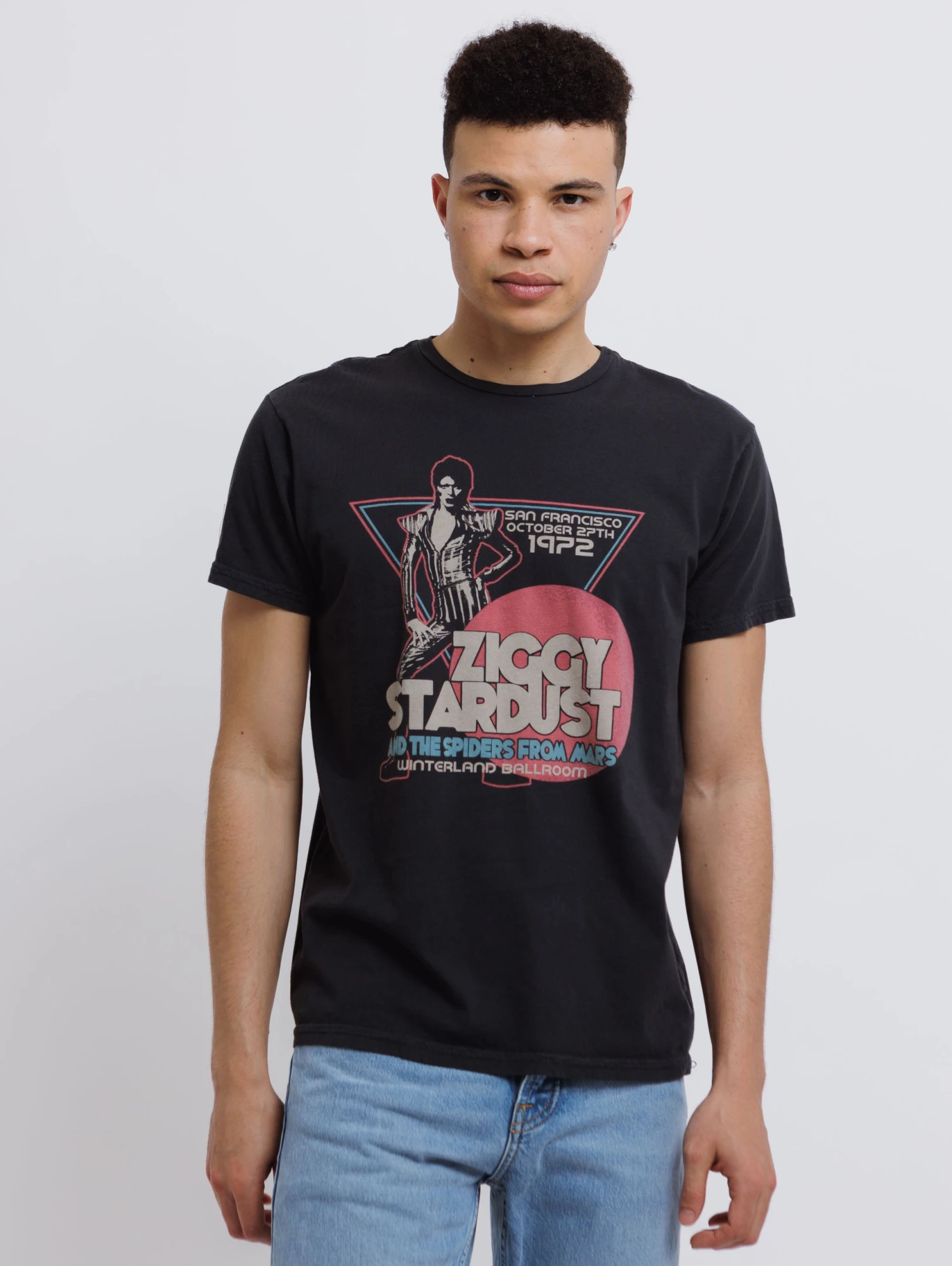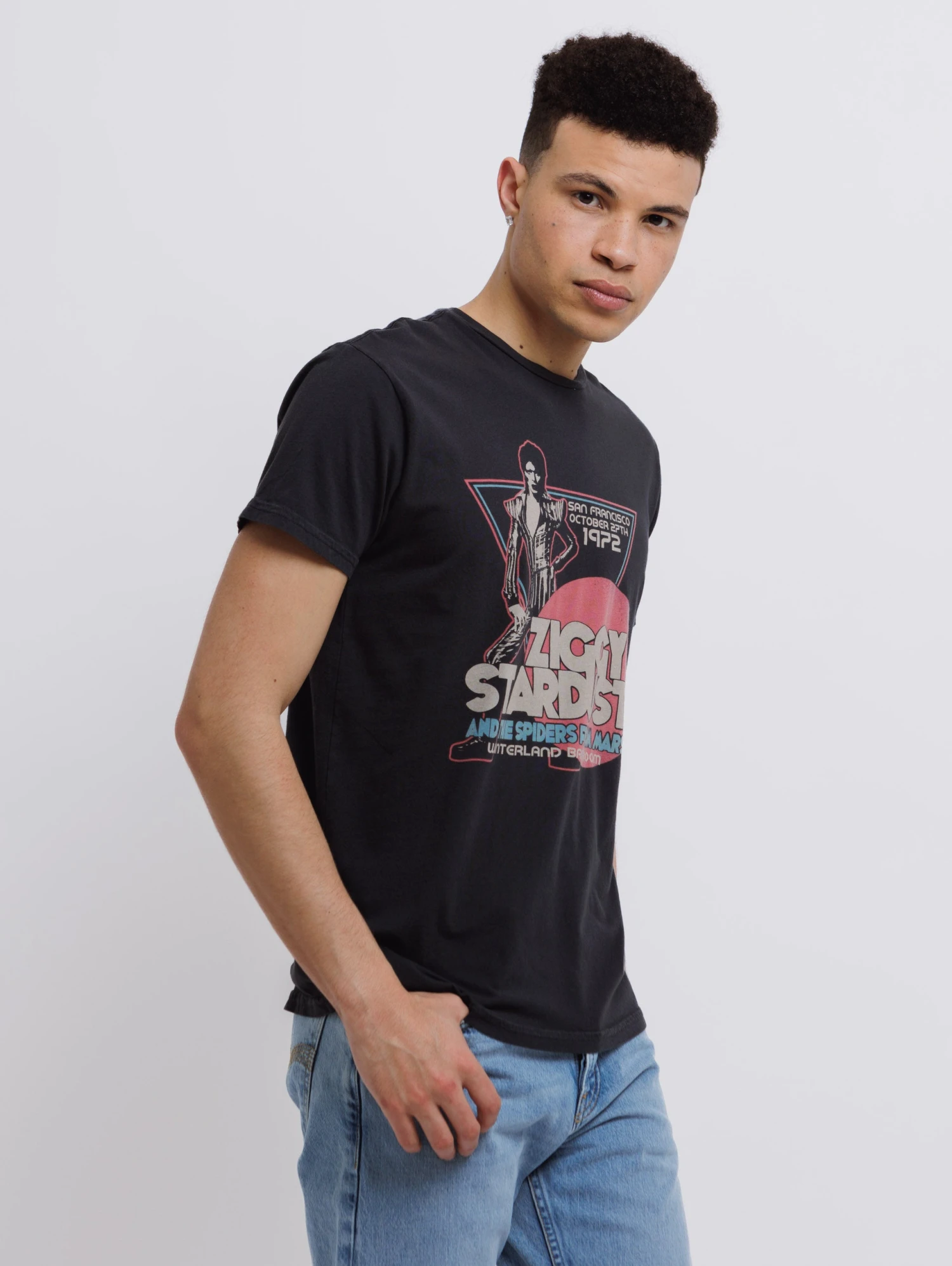 This Bowie tee is better-than-vintage and is cut from a soft, breathable 100% cotton and features a Ziggy Stardust front graphic.